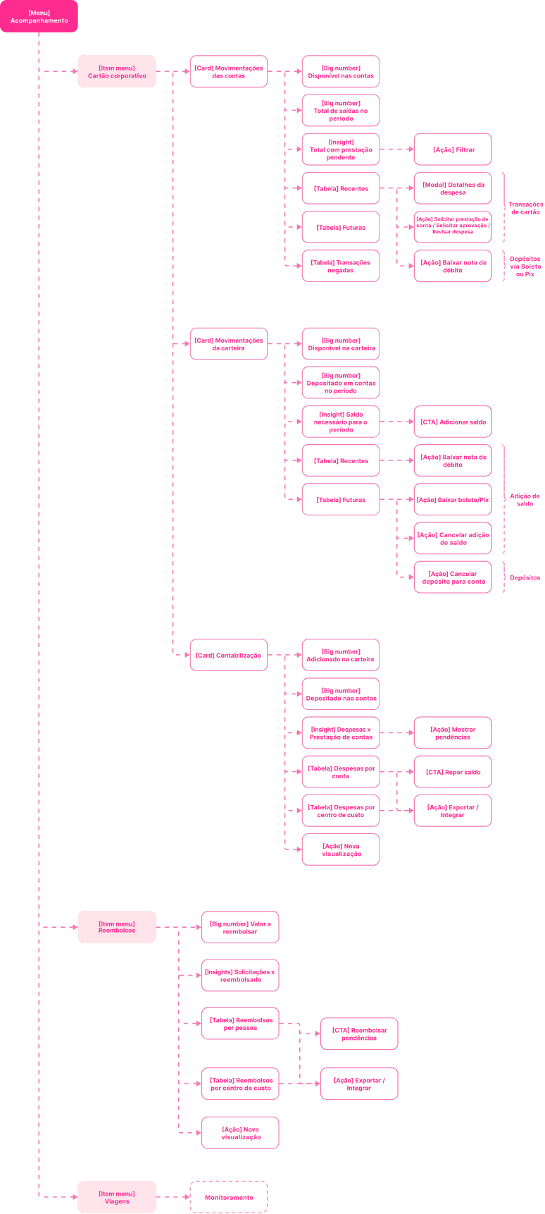 Desenhei uma arquitetura integrada entre cartões e prestação de contas, reduzindo a fragmentação e servindo de base para reorganizar a navegação.