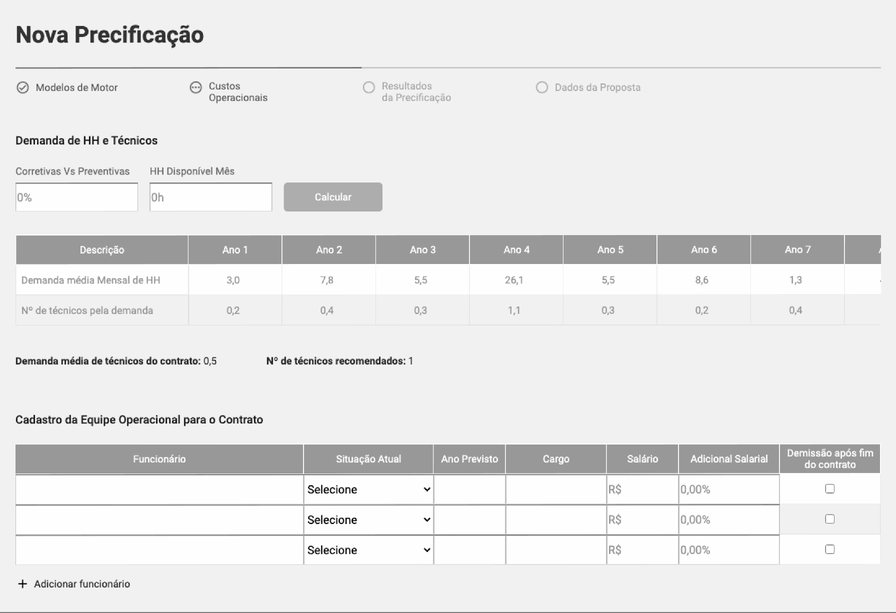 A empresa utilizava planilhas em Excel para criar orçamentos comerciais de venda e locação de equipamentos. O processo era manual, complexo e sujeito a erros, exigindo grande esforço operacional e gerando riscos financeiros quando dados como taxas, impostos e câmbio estavam desatualizados.