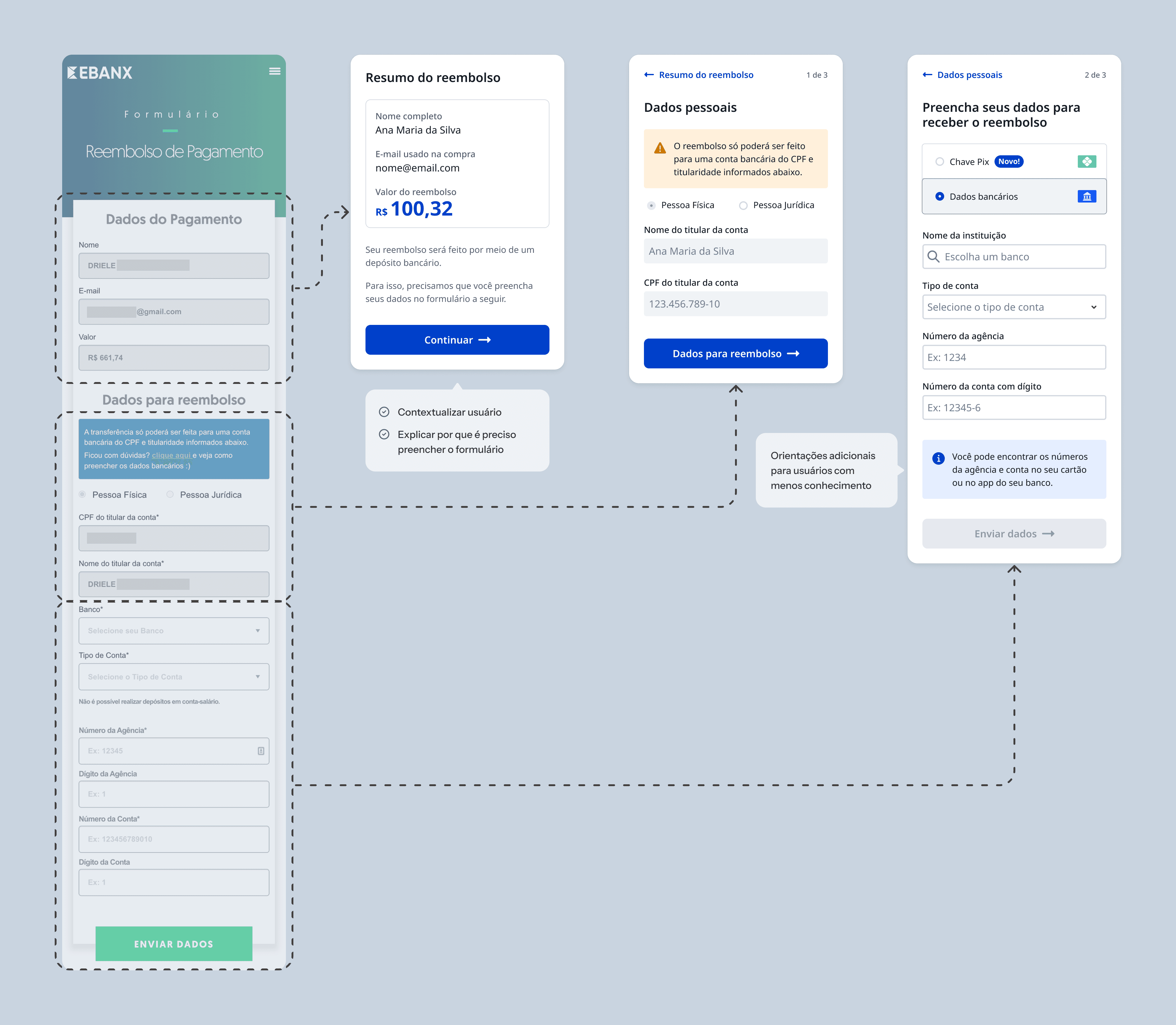 Analisei fluxos de bancos e fintechs para identificar padrões de preenchimento de dados bancários.